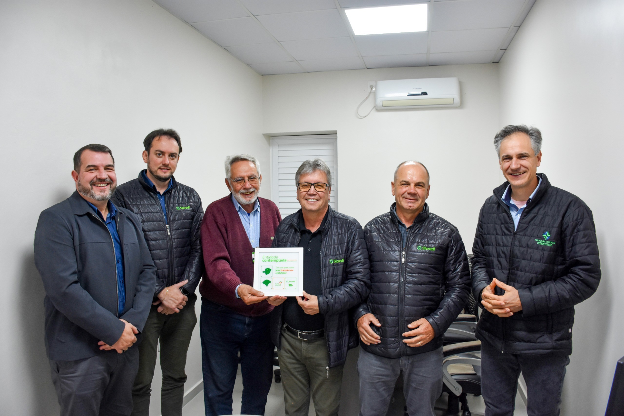 Entre as instituições beneficiadas está a Associação Hospitalar Marques de Souza, que recebeu R$ 40 mil em 2025. A entrega simbólica ocorreu na manhã de hoje e contou com a presença do presidente do Conselho de Administração da Sicredi Integração RS/MG, Luiz Mário Leite Berbigier, do diretor executivo Fabrício Marcelo Closs, do gerente da agência de Marques de Souza, Felipe Rempel da Luz, e do conselheiro de administração Clécio Frederico Schwengber. Representando a entidade, participaram o presidente Marco Aurélio Lima Trindade e o diretor administrativo, Joel Zanella.