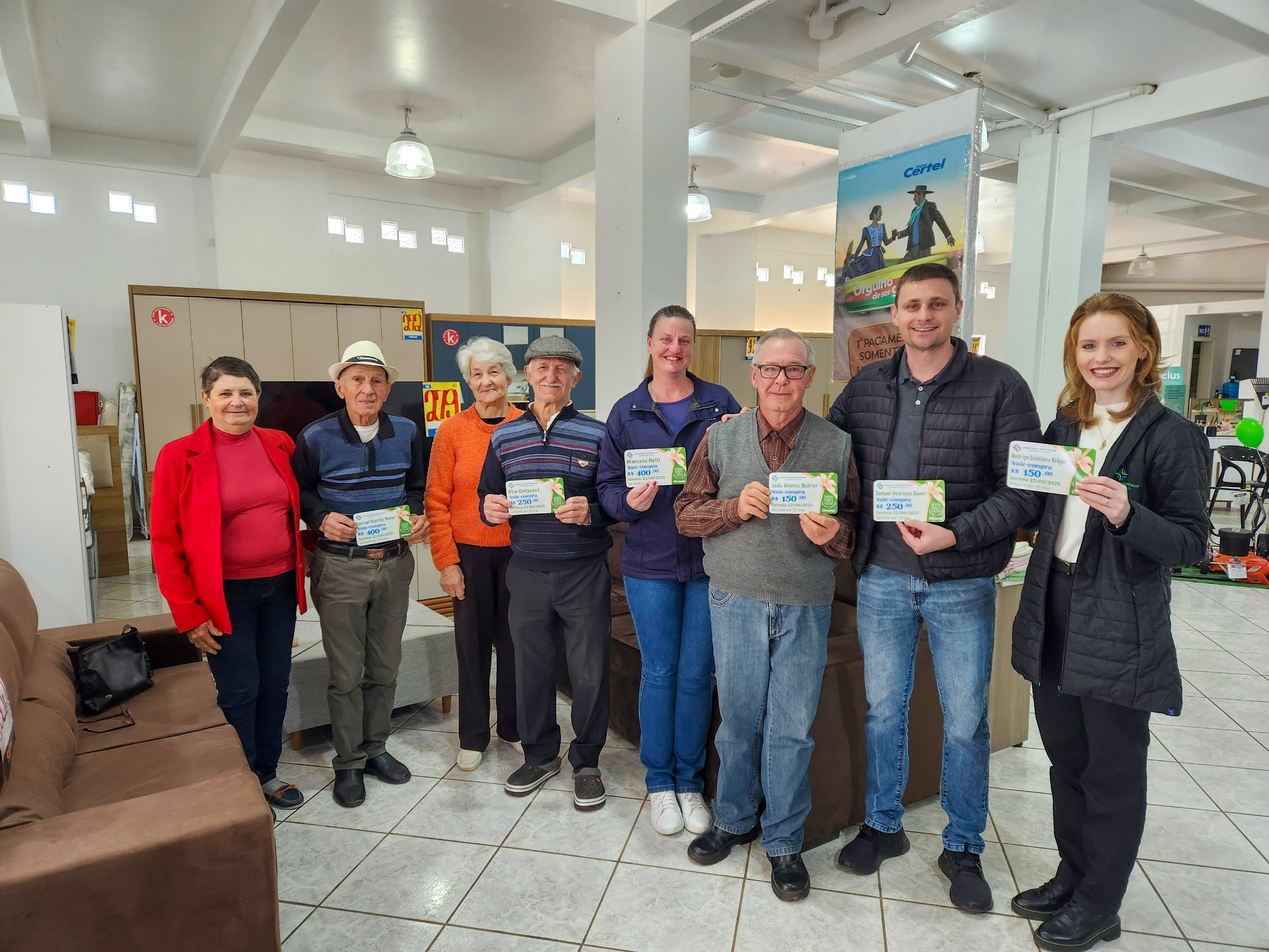 Nesta edição, foram sorteados seis vales-compra, distribuídos da seguinte forma: dois de R$ 150,00, dois de R$ 250,00 e dois de R$ 400,00.