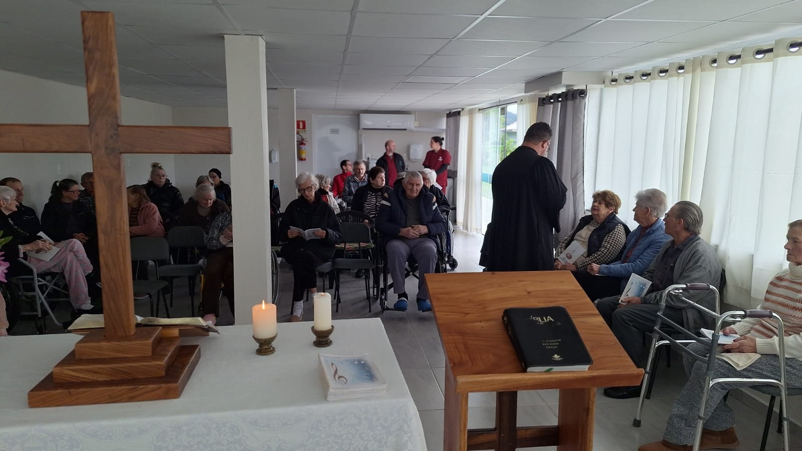 No sábado, dia 6, os moradores do Lar Dona Dora participaram de uma tarde especial marcada por espiritualidade e acolhimento. O culto foi conduzido pelo pastor Ademir Edison Trentini, da Igreja Evangélica de Confissão Luterana no Brasil, que proporcionou um momento de fé e renovação da esperança aos presentes.