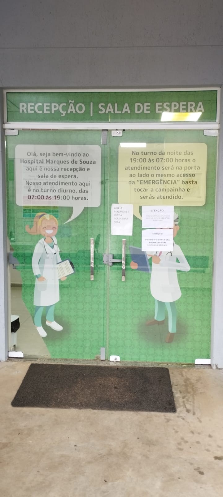 A porta principal da Associação Hospitalar Marques de Souza havia sido danificada em um ato de vandalismo, e sua substituição vinha sendo dificultada pela indisponibilidade de peças no fornecedor.